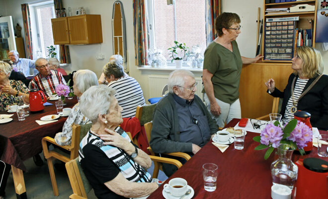 Torsdag d. 1. juni kunne man fejre, at det var 10 år siden Hyggeholdet startede på ældrecentret og det blev fejret med både taler, gaver og sang.