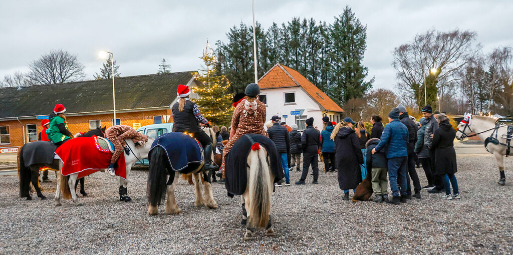 Søndagens juleoptog og juletræstænding i Skæve bød på julepyntet optog og masser af lokal opbakning. Skæve Rideklub deltog traditionen tro – og netop i år havde klubben ekstra meget at fejre, da de kunne markere deres 45-års jubilæum. Alligevel mødte et pænt antal ryttere op og red i spidsen for optoget gennem byens hovedgade.