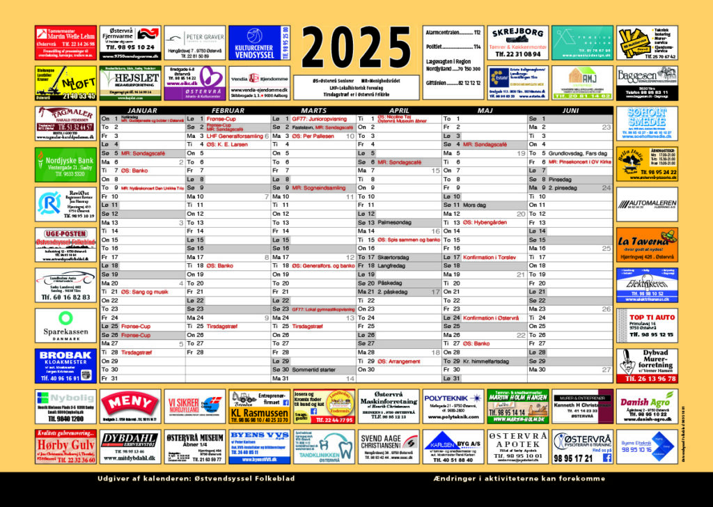 Østervrå-kalenderen er fortsat en mulighed for at få budskaber ud, og vi opfordrer lokale foreninger, interesseorganisationer m.fl. til at komme med alle de bidrag til kalenderen, som de allerede nu har planlagt.
