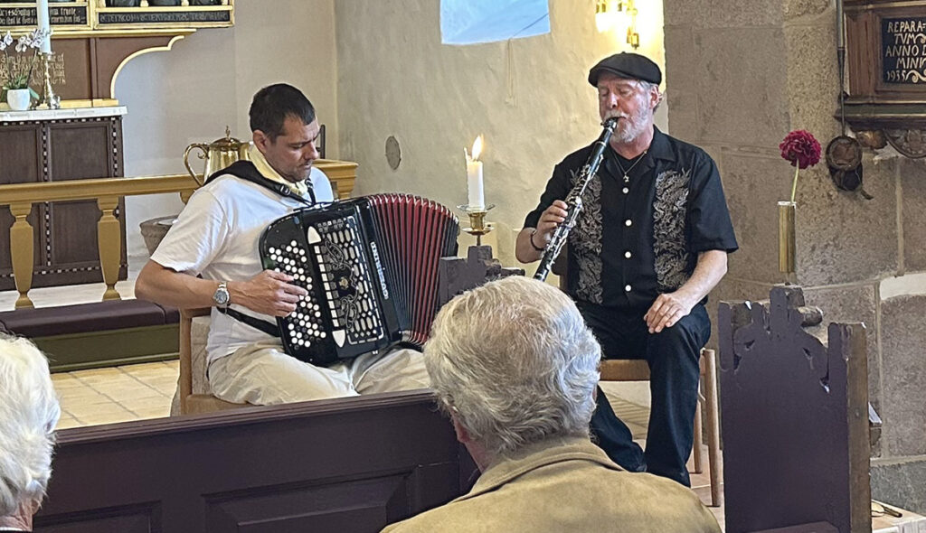 Genren var noget som vi ikke kendte i forvejen, de spiller nemlig jødisk og arabisk samt balkanmusik. Alligevel formåede de, at få hele kirken til at synge med og vi fik en lille lektion i de, for de fleste, lidt ukendt sprog sangene var på. Det hele blev fremført med en meget stor indlevelse og en rigtig stor portion humor, så kirken flere gange rungede af latter.